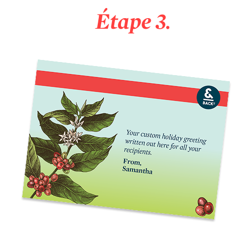 Pour toute commande de 10 unités ou plus, ajoutez un message personnalisé sur une carte postale pour rendre vos cadeaux encore plus mémorables.