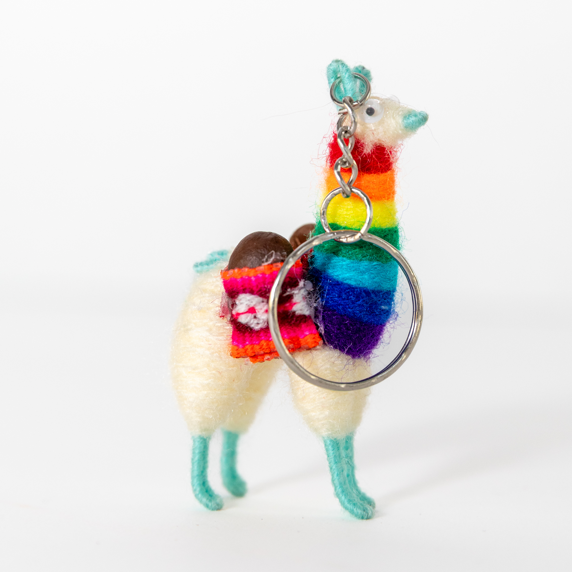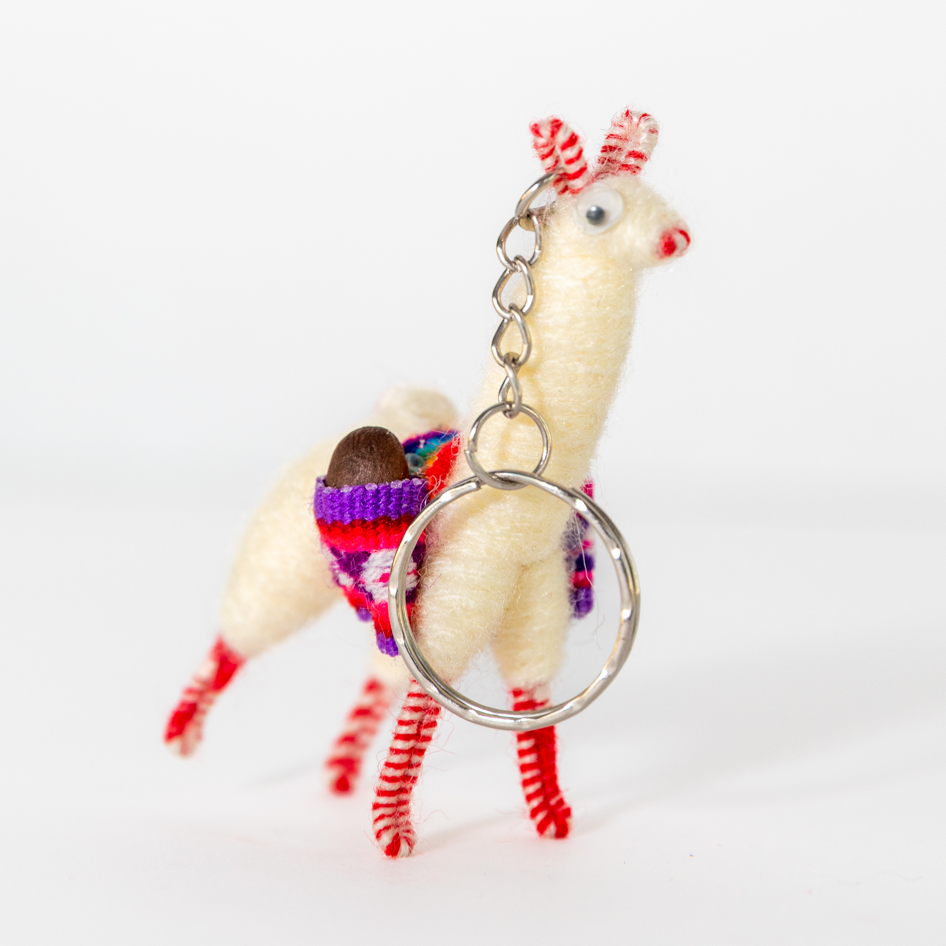 Made from soft natural fibers, each one is unique, with charming details that bring warmth and purpose to any setting. Choose the llama keychain to add a playful, meaningful touch to your keys, bag, or holiday stocking, or the llama holiday ornament to hang on your tree, tie to a gift, or display year-round as a symbol of connection, artistry, and impact.